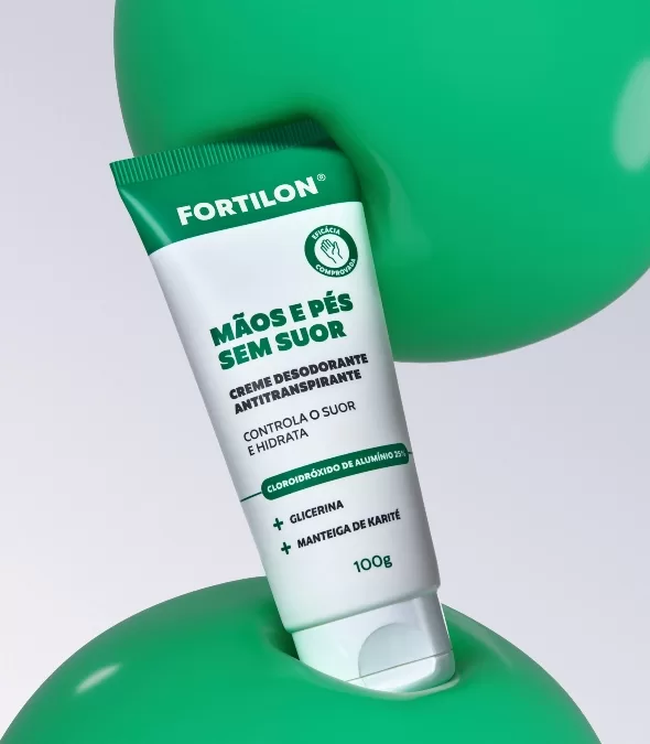 O creme antitranspirante Mãos e Pés sem Suor oferece controle eficaz da transpiração e hidratação ao mesmo tempo. Sua fórmula especial contém Cloridróxido de alumínio 25%, que atua diretamente na redução da produção de suor em até 30% por até 48 horas; Glicerina, que mantém a pele hidratada e macia; e Manteiga de Karité, que forma uma película protetora contra o ressecamento. O resultado é uma pele seca, confortável, hidratada e perfumada ao longo do dia, ideal para quem sofre com suor excessivo.