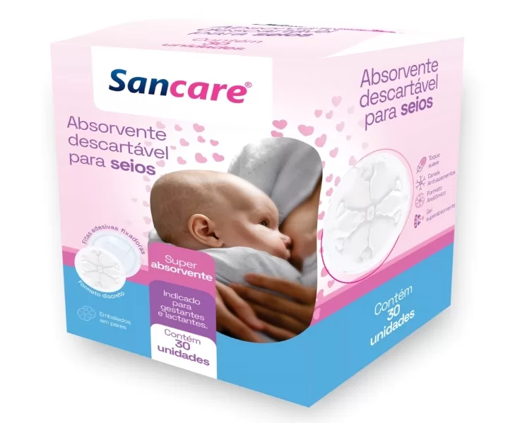 Já o Absorvente Descartável para Seios foi projetado para proporcionar proteção e conforto durante a amamentação. Com toque suave e formato anatômico, adapta-se ao corpo de forma discreta, enquanto seus canais antivazamento e o gel superabsorvente mantêm a pele seca e livre de desconfortos. Os produtos são embalados em pares, e cada embalagem contém 30 unidades.